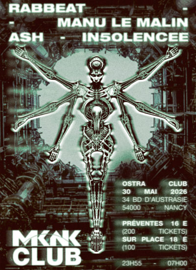 // SAVE THE DATE // SAM 30 MAI 2026 EVENT Pour la toute première fois en 13 ans d’existence de notre club nous invitons un label indus Hardcore mais pas n’importe lequel celui de Manu Le Malin : MKNK records.Rabbeat […]